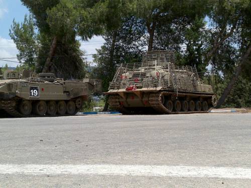 «жестокая»тяжёлый гусеничный бронетранспортёр на базе трофейных танков Т-54 и Т-55 слева.